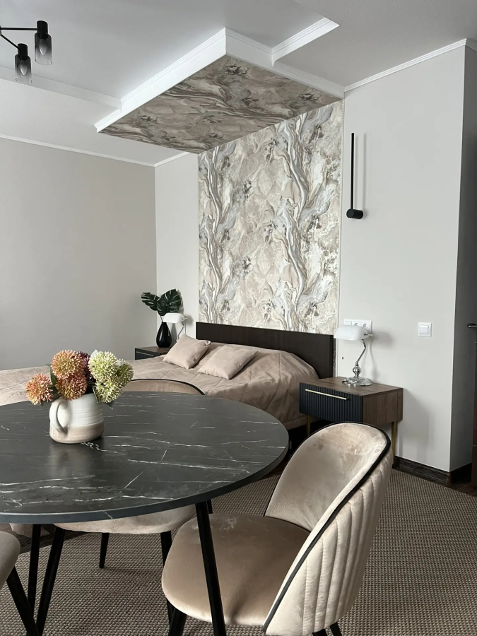 Номер Люкс площадью 36 квадратных метров объединяет в себе элегантность и функциональность. Просторная планировка позволяет не только комфортно разместиться, но и насладиться атмосферой уединения. Современный интерьер и мягкая мебель создают идеальные условия для вашего отдыха.